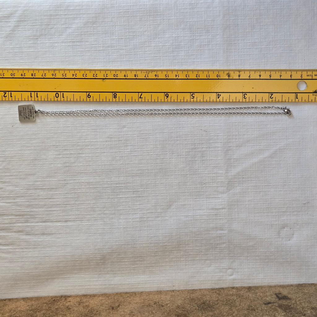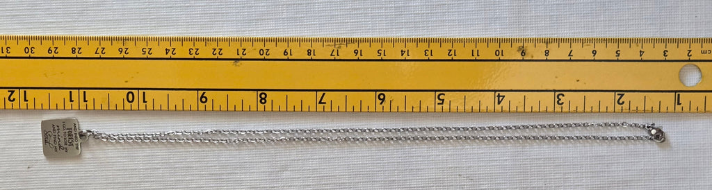 A comforting reminder of the healing power of nature. Metal pendant measures approx. 5/8" square and hangs on a approx. 20" steel chain, as shown. Handmade in the USA.