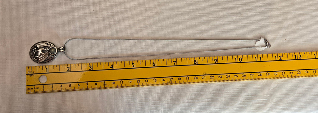 Pendant size is approximately 1" wide, crafted in fine pewter, handcrafted in USA. Includes a gorgeous Stainless Steel snake chain.